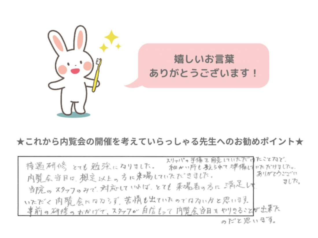 ただ院内を見ていただくだけではなく、しっかりコミュニケーションをとりながら回っていただくことで、先生やスタッフさんの人柄まで知っていただくことができました!