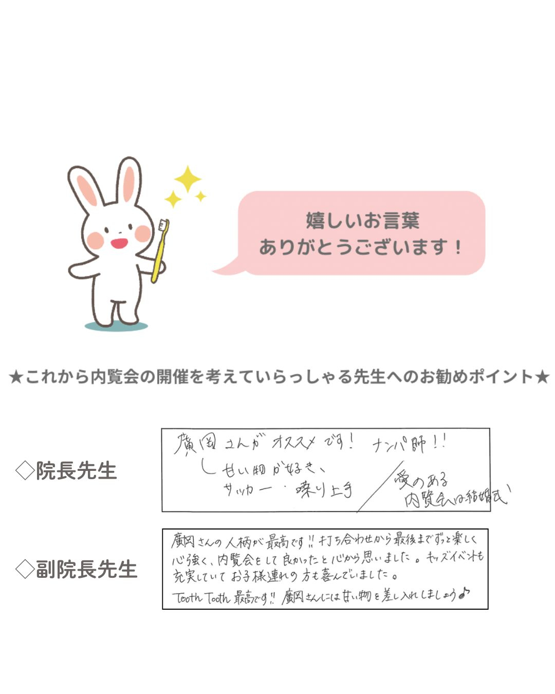 院長の優樹先生、副院長の満里子先生からも嬉しいお言葉をいただきました。