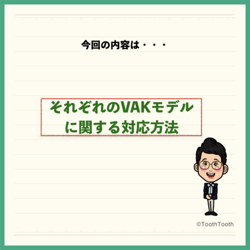 3つのVAKモデルに関する対応方法についてお伝えいたします。