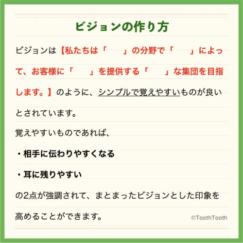 ビジョンは、シンプルで覚えやすいものが良いとされています。