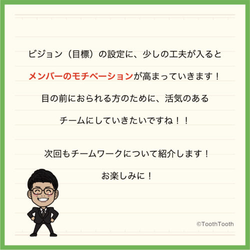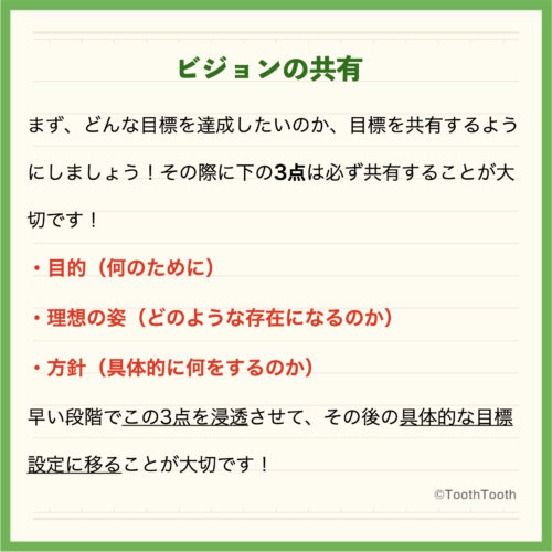 まず、チームワークを高めるには【ビジョンを共有】することが大切です。