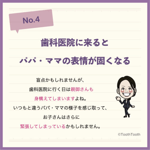 「歯科医院に来ると、パパ・ママの表情が固くなる」