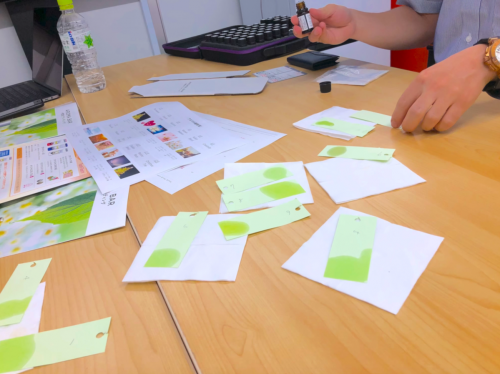 実際に歯科医院で働くスタッフさん、患者さんの意見を取り入れて香りを選定していきます。