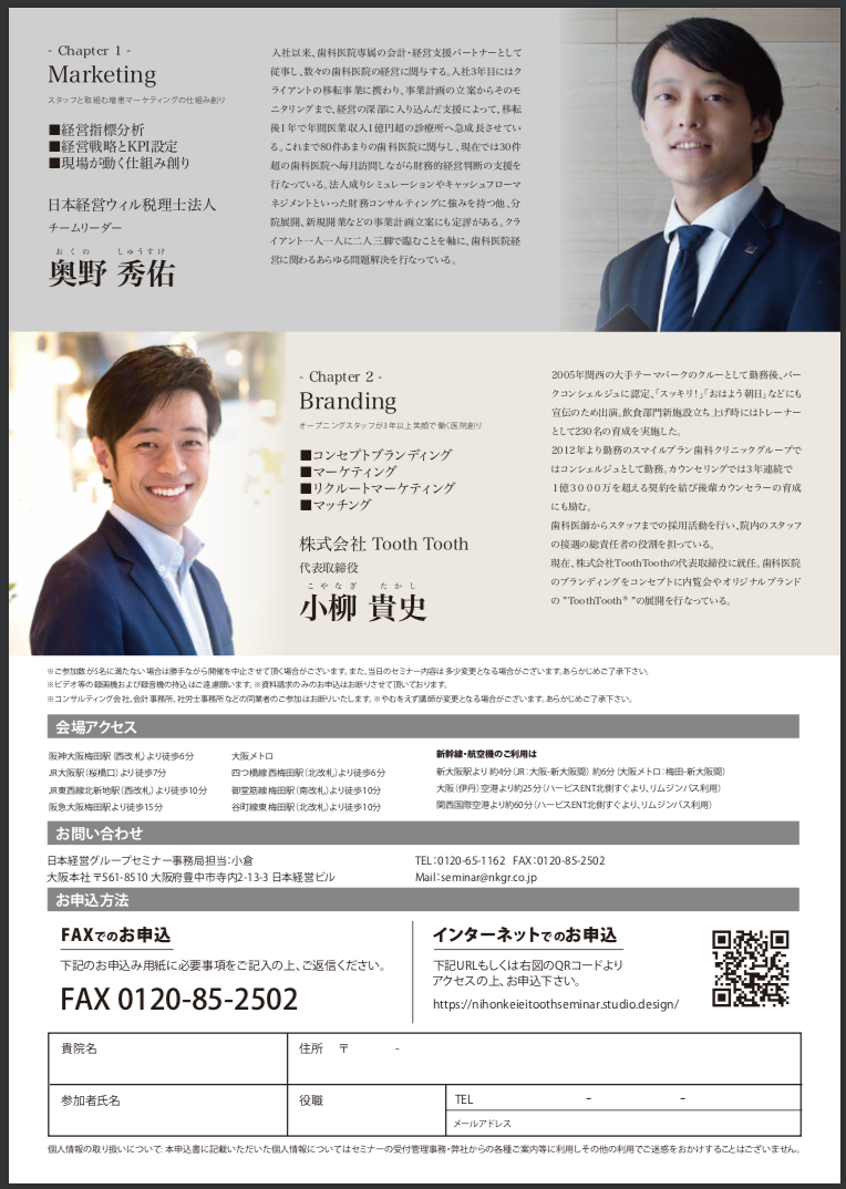 - 【採用と集患に勝てる歯科医院創り/歯科限定 経営セミナー in 大阪】