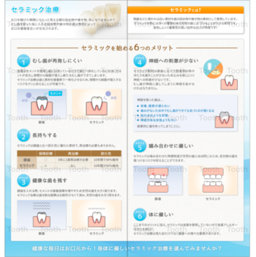 セラミック治療を始めるメリットを6つに分けて掲載しています。