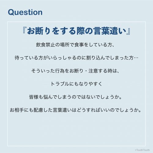 そういった行為をお断り・注意する時は、トラブルにもなりやすく皆様も悩んでしまうのではないでしょうか。