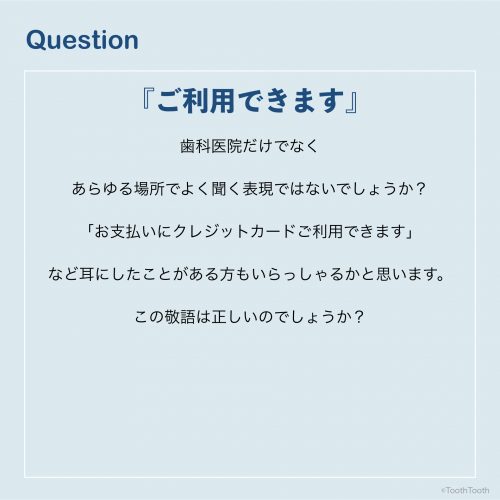 歯科医院だけでなくあらゆる場所でよく聞く表現ではないでしょうか?