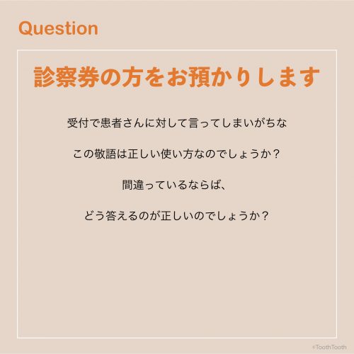 受付で患者さんに対してついつい言ってしまいがちな 、この敬語は正しい使い方なのでしょうか?