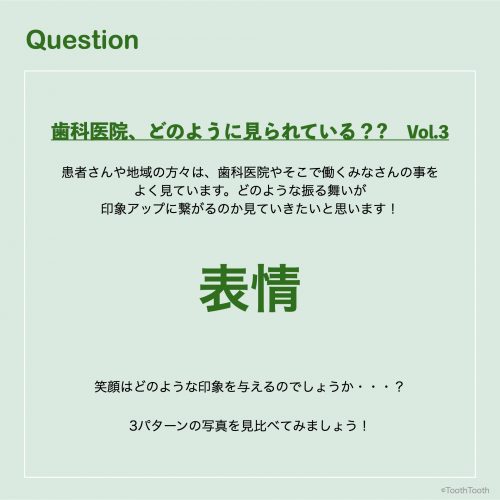 患者さんと接する時は「微笑み」「笑顔」を常日頃から意識する事が重要です。
