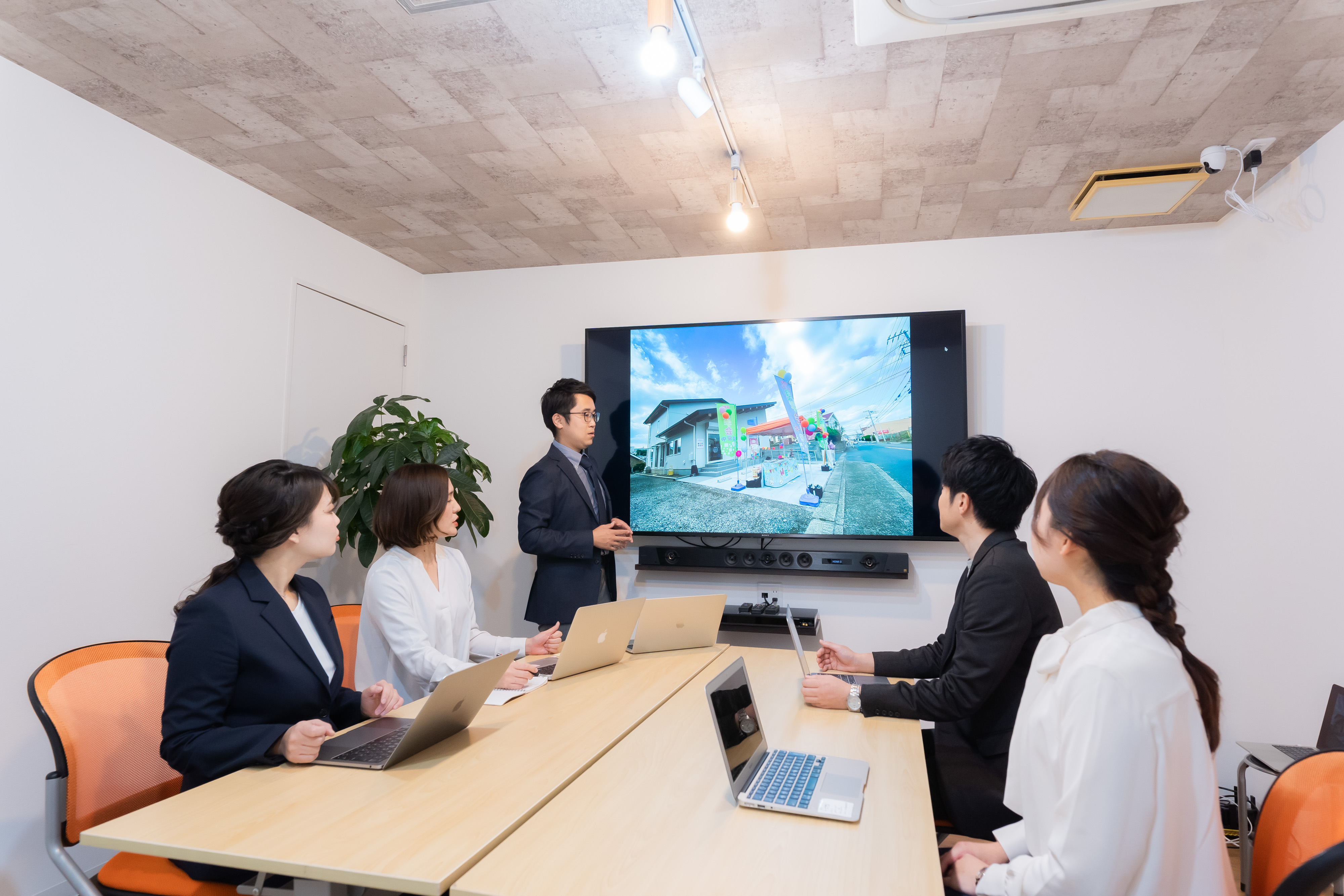 社内はモニター設置の会議室やカフェのような休憩室などより勤務しやすい環境を整えました。