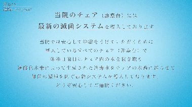チェア消毒水とAEDを導入している医院さんは、この動画を流していただくことで患者さんに安心して通院していただけるようになることを目指しています。